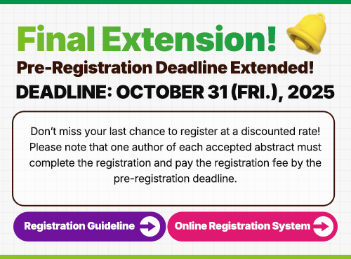 - The Abstract Submission Deadline has been extended by Sep. 12 (Fri.), 2025! 2025.09.01